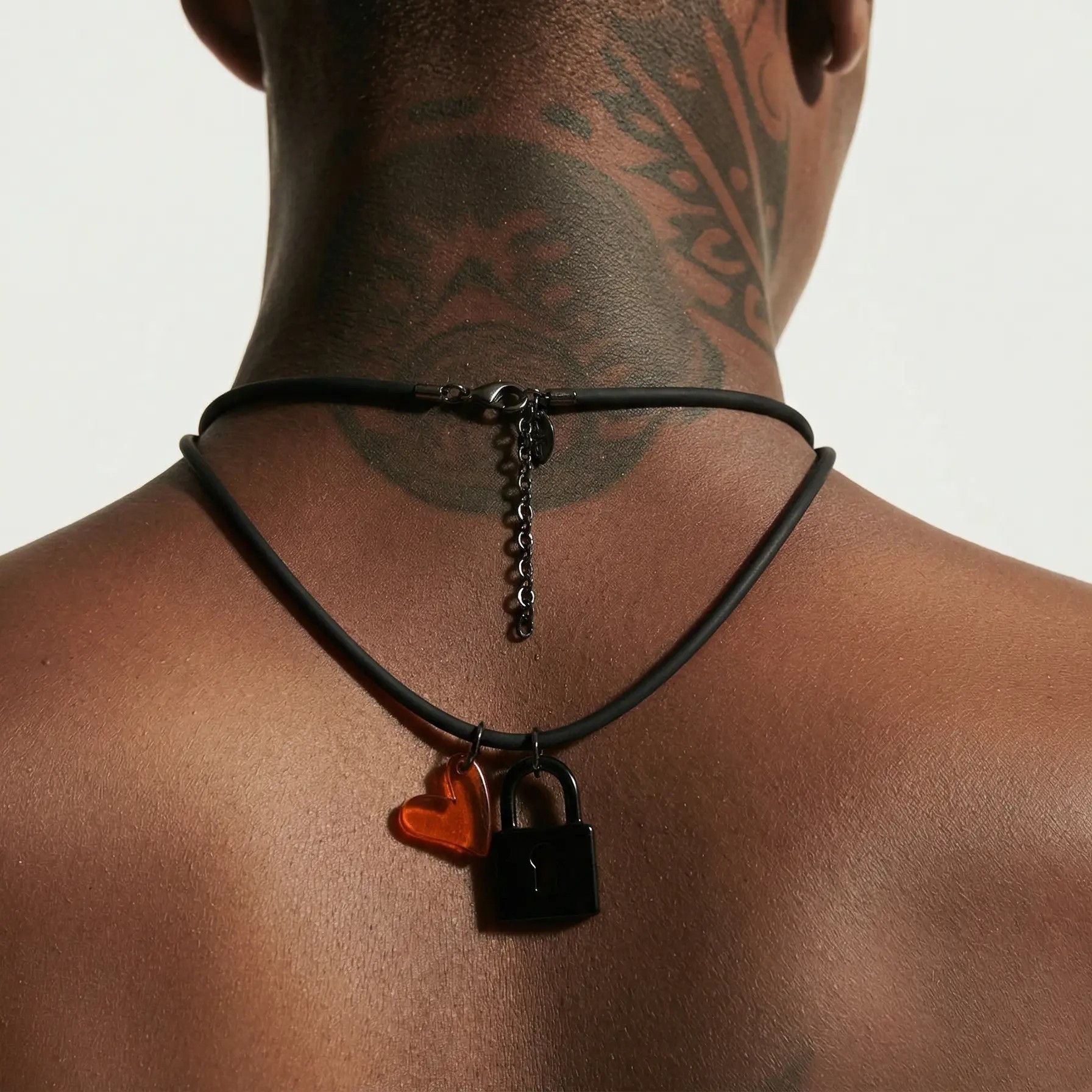 Versatilità: Montata su una catena tecnica in [inserire materiale, es: acrilico o metallo nero], la collana Locked Passion definisce lo stile di chi la indossa. Si abbina perfettamente a un look total black, a una giacca di pelle o a un outfit urban-chic, aggiungendo una nota di colore carica di significato.